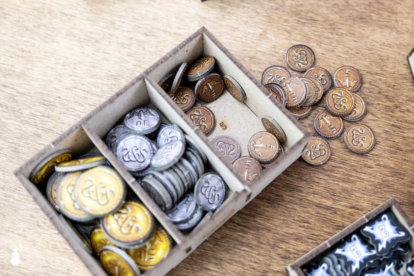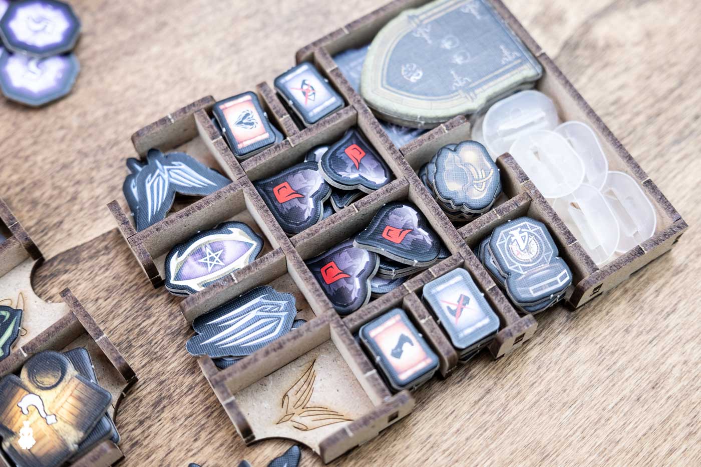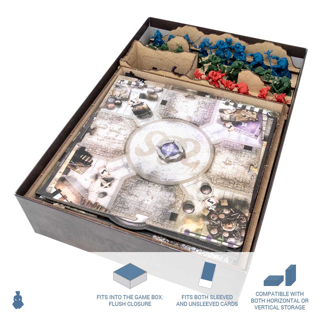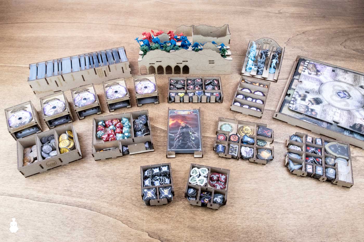 Organizer compatibile con Sword and Sorcery, con tray modulari per gioco base o espansioni Verso le Tenebre, Portale Arcano, La tana di Vastaryous, pack Eroi aggiuntivi, ghost soul form heroes, monete in metallo.