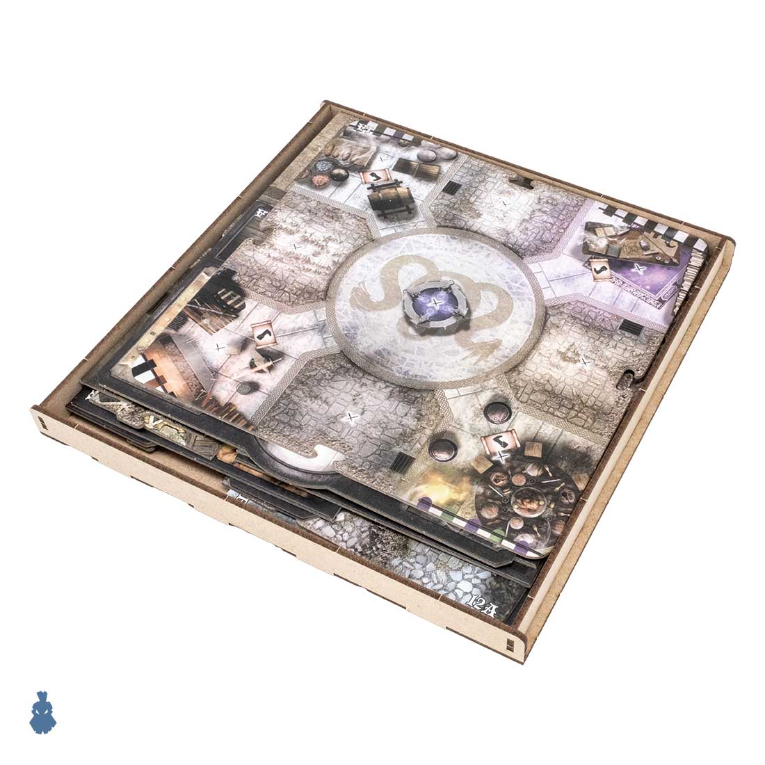 Setupper progettato per migliorare l’esperienza di gioco. Tempi di preparazione pressoché azzerati grazie a contenitori separati ed estraibili, personalizzati con spazi per ogni singolo componente; incisioni guida per inserire i componenti del gioco nei corretti alloggiamenti; scheda istruzioni di montaggio e quick help per reinserimento organizer nella scatola originale del gioco.